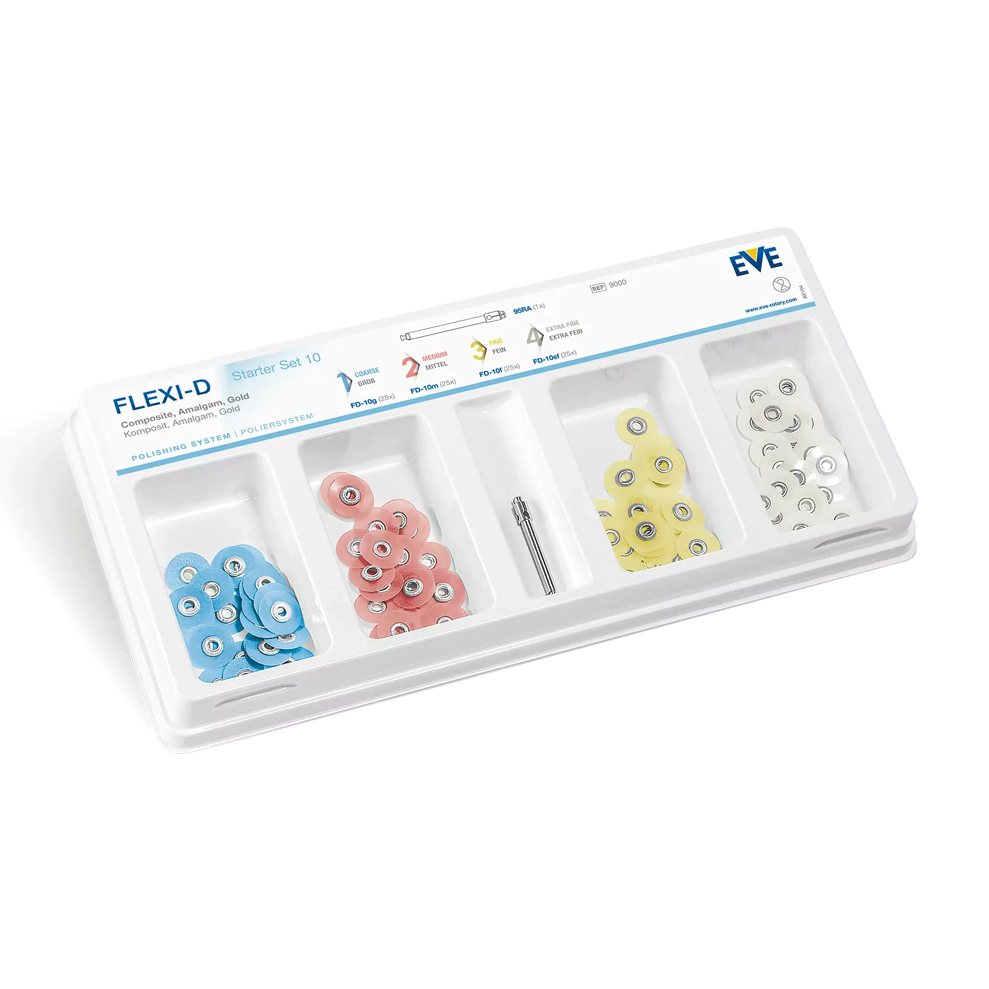 FLEXI-D FD-10f гибкие полировальные диски. Абразив - оксид алюминия. Одностороннее покрытие. В набор входят диски для грубой, средней, тонкой и супер тонкой полировки по 25 шт.