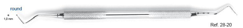 Цилиндрическая ручка стоматологического экскаватора очень удобна в использовании. На внешнюю поверхность рукоятки инструмента с обоих концов нанесены продольно-поперечные насечки, предотвращающие скольжение фаланг пальцев в перчатке и снижающие нагрузку на руку.