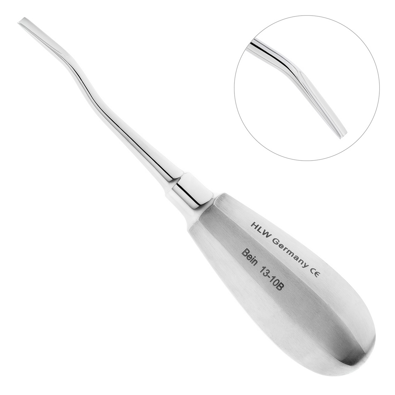 Рабочая поверхность инструмента имеет байонетный изгиб, прямоугольный край и выемку в форме жёлоба. Ширина щечки элеватора 4 мм. Такая конструкция рабочей части инструмента дает возможность провести операцию в случае затрудненного открывания рта.