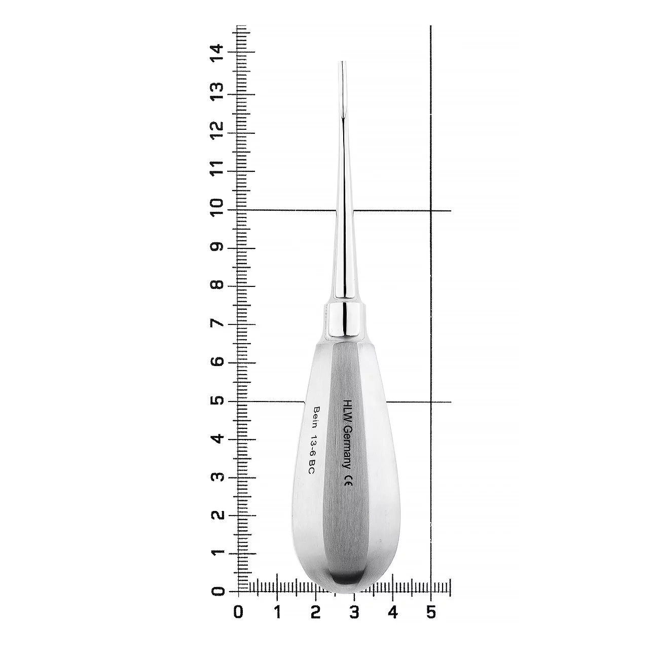 Укороченная ручка элеватора имеет грани, которые предотвращают скольжение руки в перчатке и способствуют проведению операции.