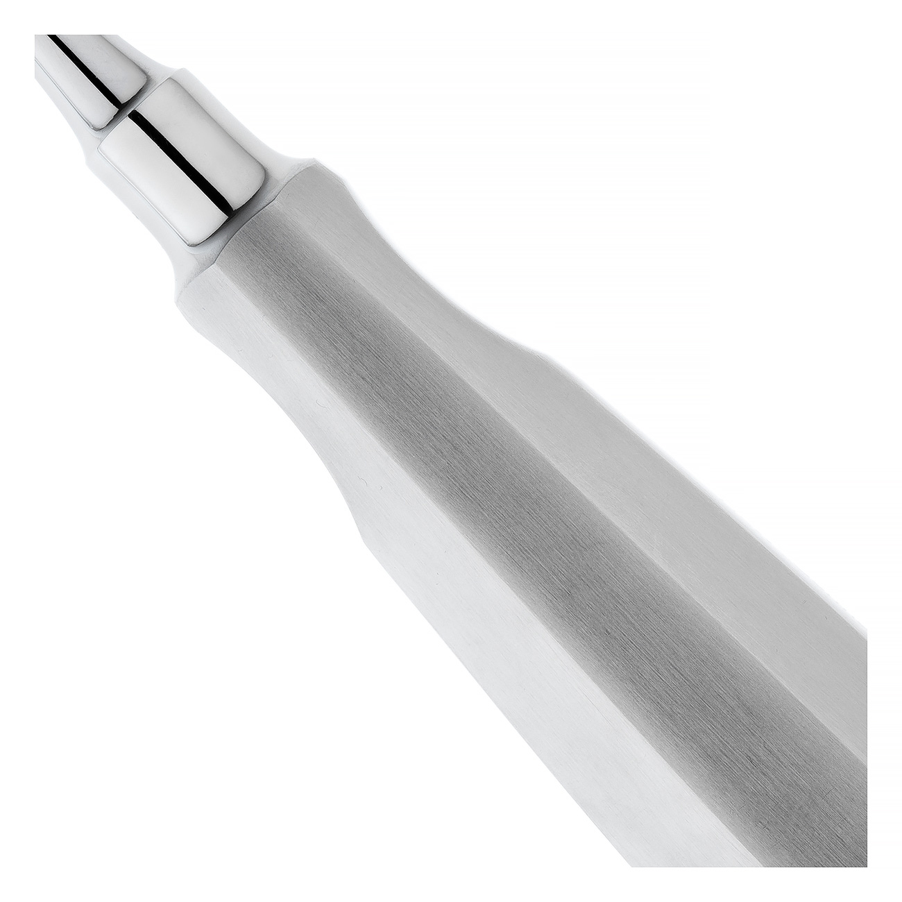 Прямой инструмент удобен в использовании. Восьмигранная укороченная ручка элеватора плавно переходит в функциональный стержень инструмента. Такая конструкция обеспечивает надежную фиксацию и предотвращает скольжение элеватора в руке.
