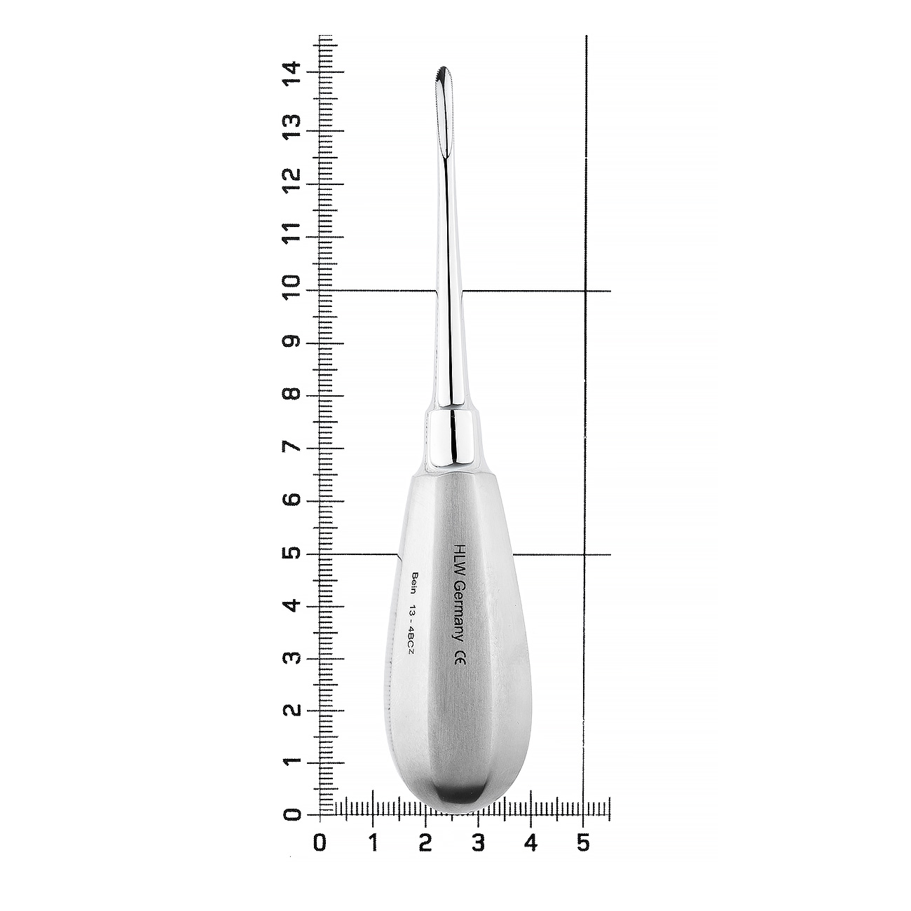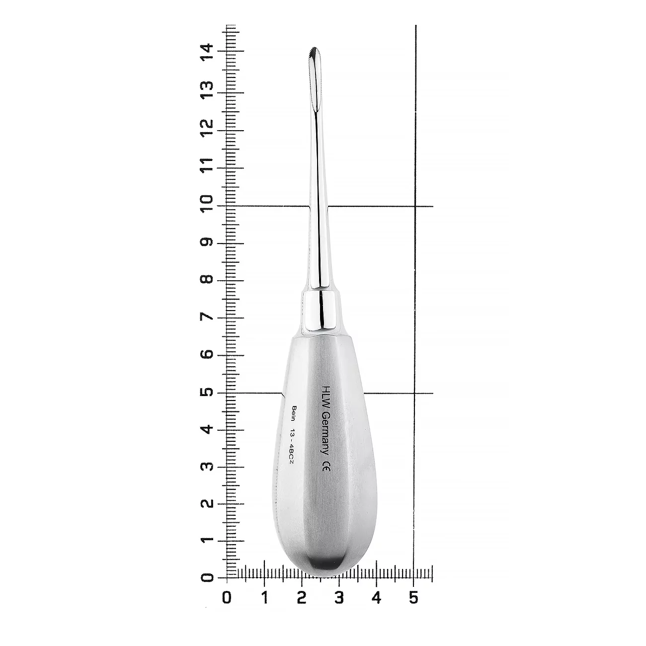 Укороченная ручка элеватора имеет грани, которые предотвращают скольжение руки в перчатке и способствуют проведению операции.