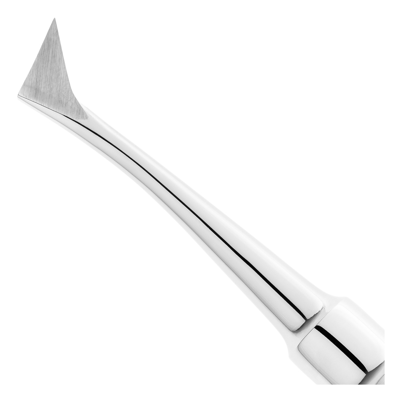 Элеватор надежно фиксируется и не скользит в руке, благодаря граням и выемкам под пальцы на ручке инструмента. Такая конструкция очень удобна в использовании и способствует успешному проведению операции.