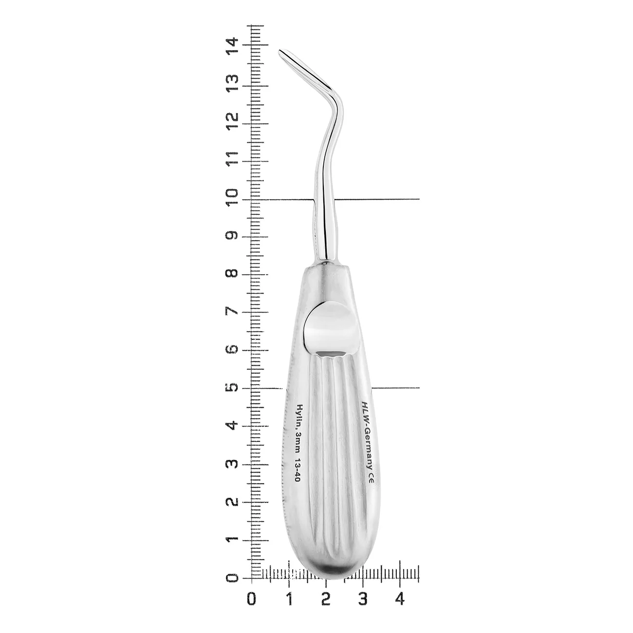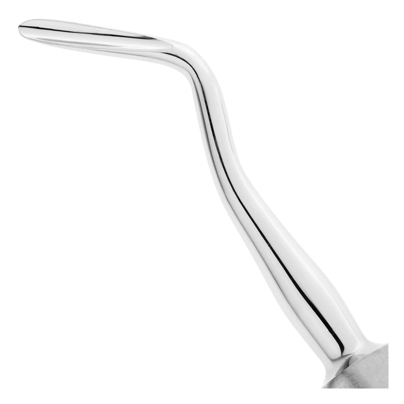 Рабочая часть изогнутого инструмента имеет форму желоба с закругленным концом. Поверхность лезвия с желобовидным углублением ориентирована на себя, так как после внедрения элеватора между корнем зуба и стенкой альвеолы врач осуществляет вывихивание зуба вращением рукоятки инструмента по ходу часовой стрелки. Ширина рабочей части 3 мм.
