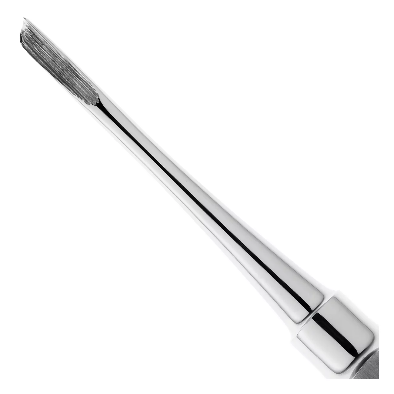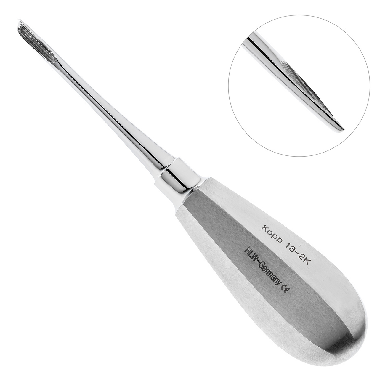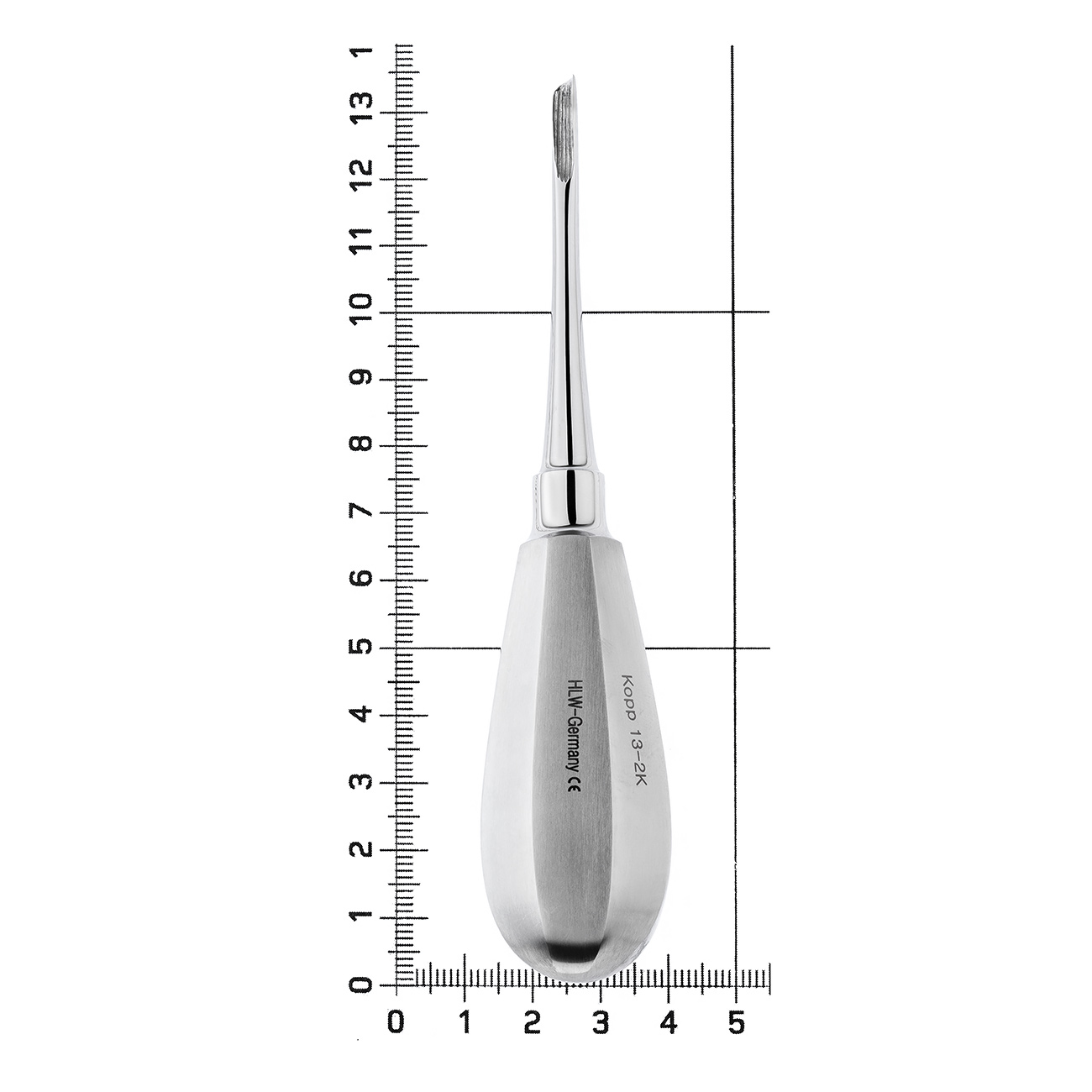 На поверхности ручки прямого инструмента есть грани, благодаря которым предотвращается скольжение фаланг пальцев в перчатке. Укороченная полая ручка элеватора очень удобна в использовании и способствует успешному проведению операции.