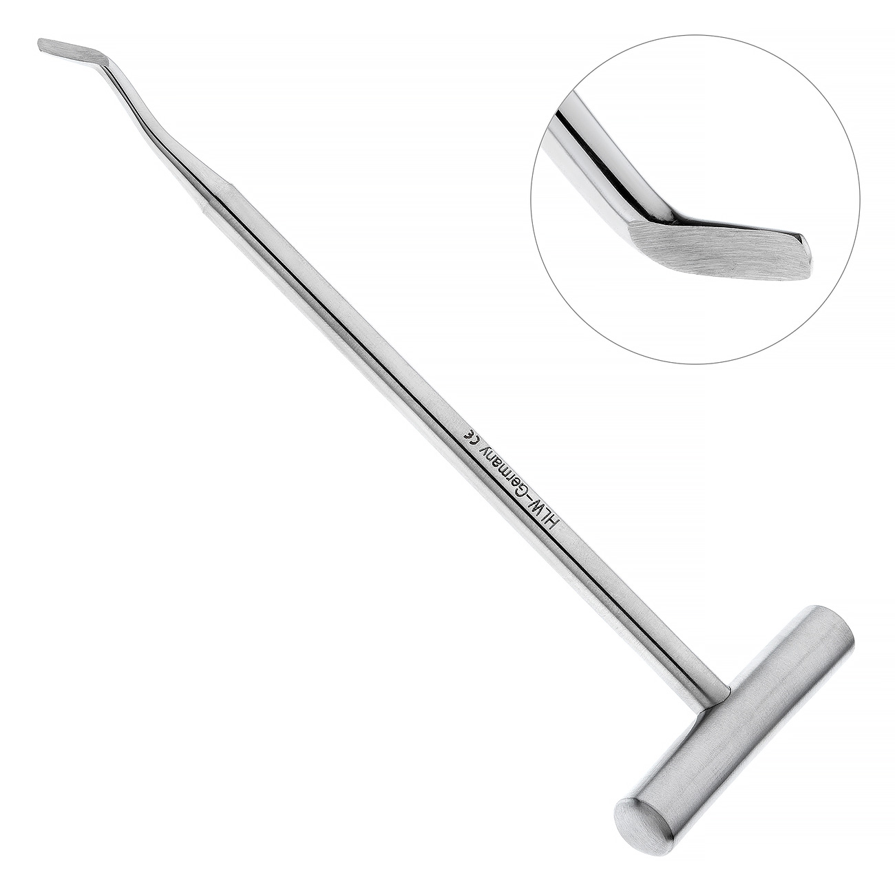 Ручка элеватора цилиндрическая, гладкая, с закрепленным в ней прямым удлиненным соединительным стержнем. Благодаря такой конструкции инструмент надежно фиксируется и не скользит в руке.