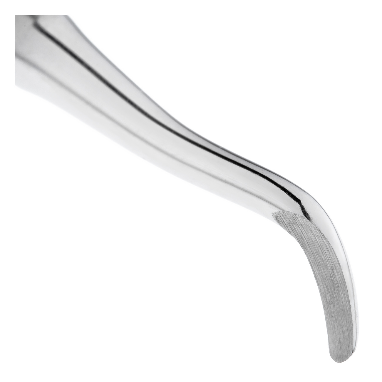 Ширина рабочей части элеватора 2,5 мм. Щечка изогнутого инструмента имеет овальную форму и гладкую рабочую поверхность, что облегчает введение элеватора в лунку зуба и способствует проведению операции.