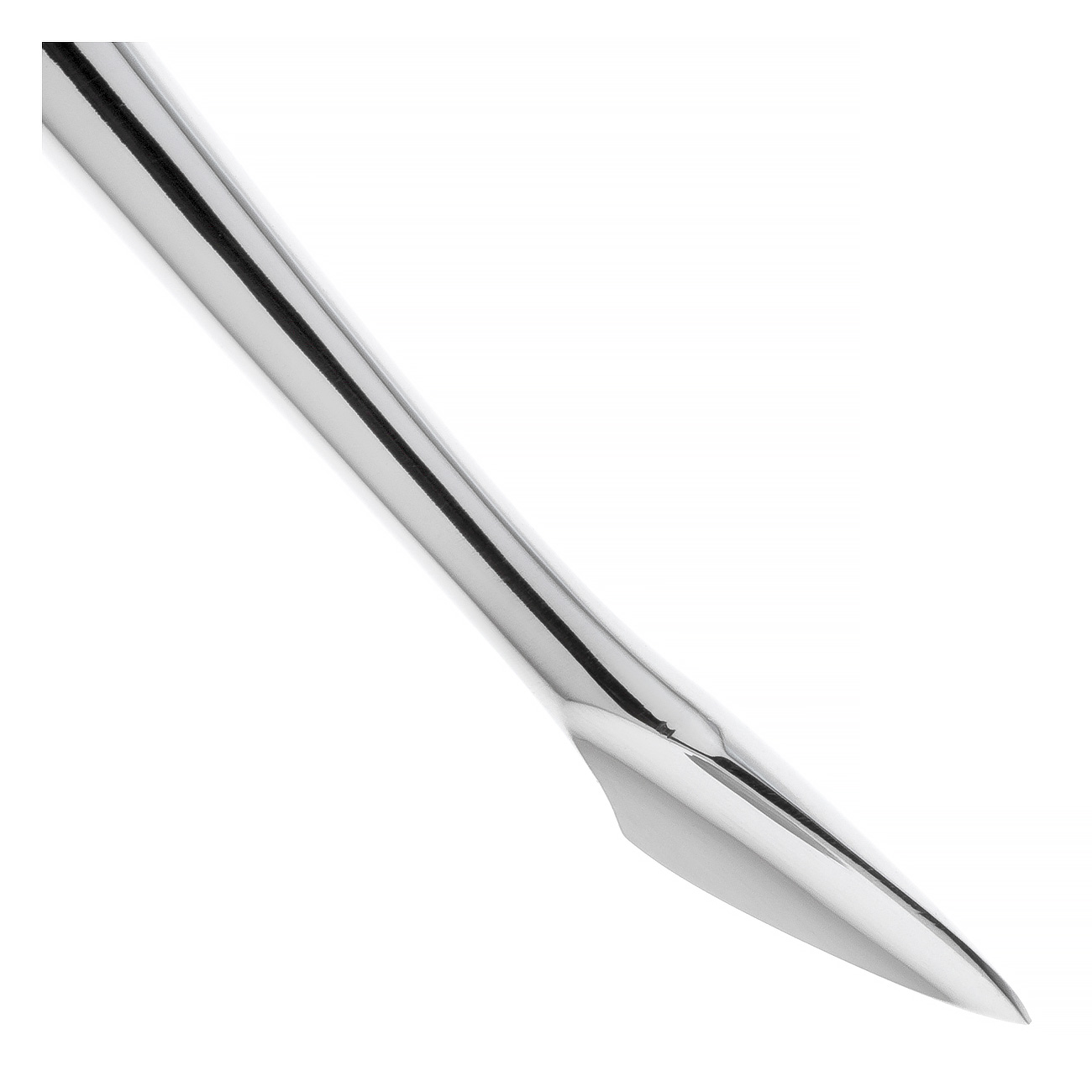 Рабочая поверхность инструмента выполнена в пламевидной форме, имеет желобовидное углубление и заостренный край. Такая конструкция щечки элеватора обеспечивает оптимальный доступ к фронтальной группе верхнего зубного ряда и максимально эффективную люксацию. Ширина рабочей части инструмента 3 мм.