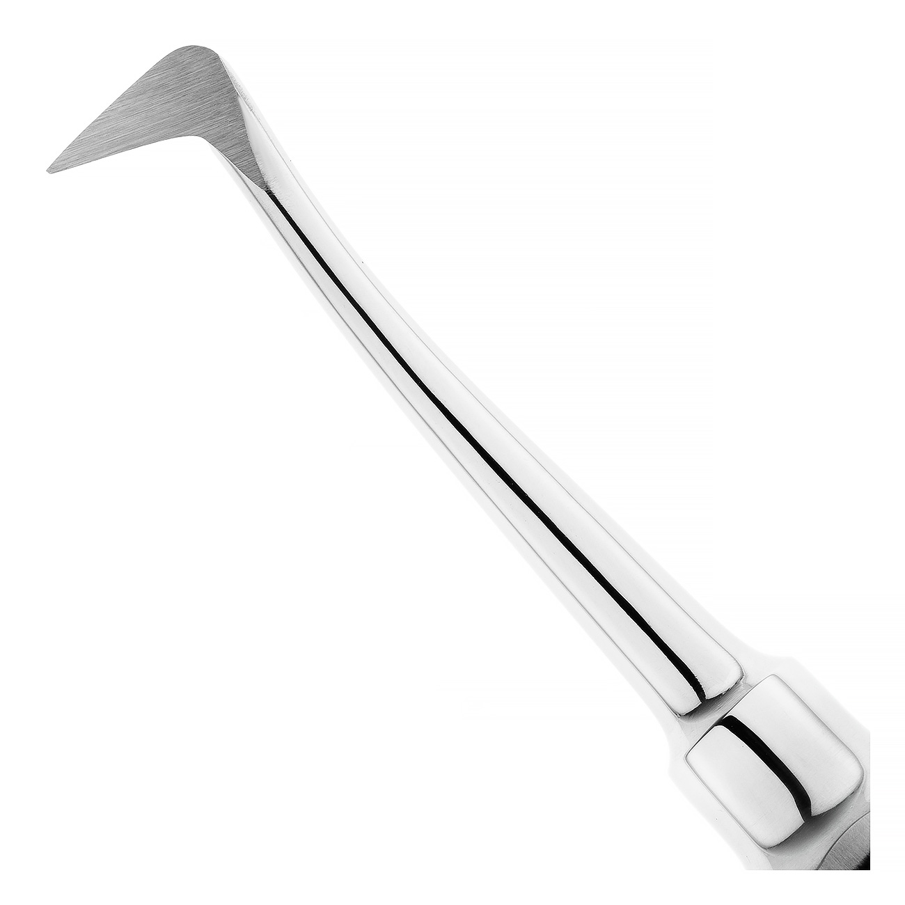 Восьмигранная ручка инструмента с выемками под пальцы обеспечивает надежную фиксацию и предотвращает скольжение элеватора в ладони. Благодаря такой ручке инструмента снижается нагрузка на руки.