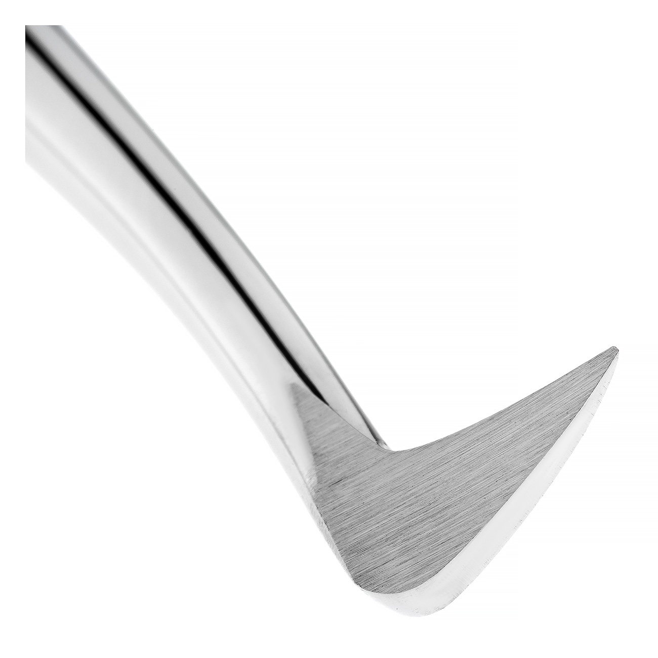Инструментом удобно проводить операцию по вывихиванию корней зубов, благодаря его конструкции. Рабочая часть изогнутого элеватора имеет треугольную форму и заостренный край. Щечка инструмента легко вводится между корнем зуба и стенкой альвеолы, и без особых усилий осуществляется удаление зуба вращением рукоятки элеватора по или против хода часовой стрелки.
