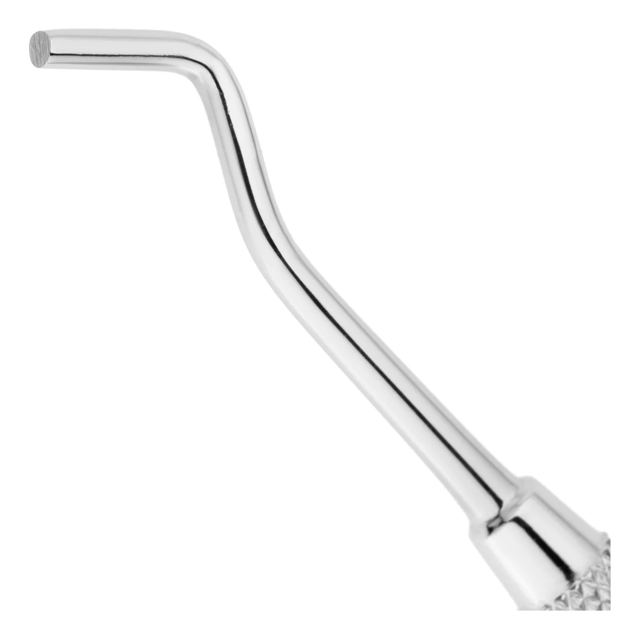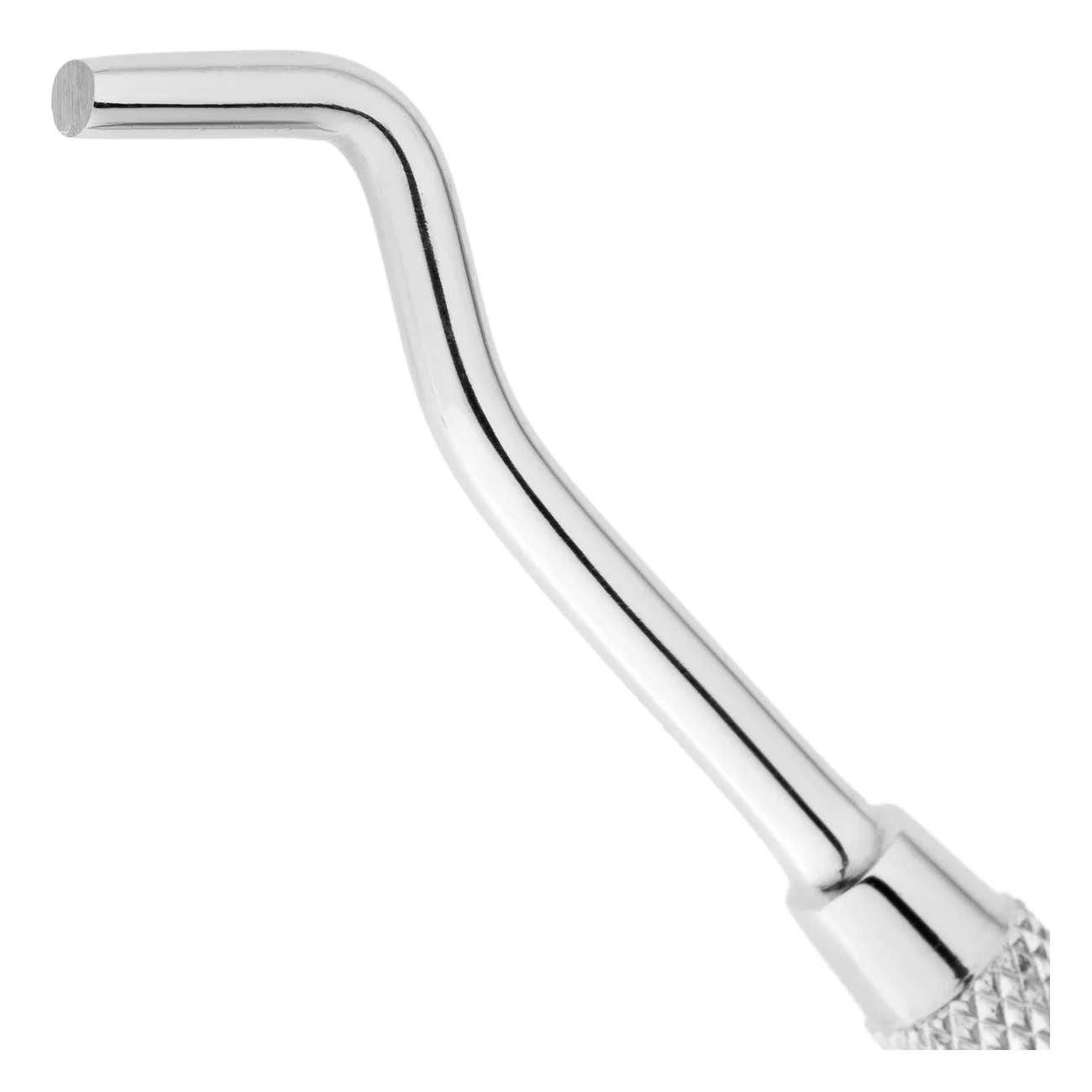 На внешнюю поверхность круглой ручки инструмента нанесены ретенционные узоры, предотвращающие скольжение фаланг пальцев в перчатке, а также позволяющие снизить нагрузку на руку при проведении манипуляций.