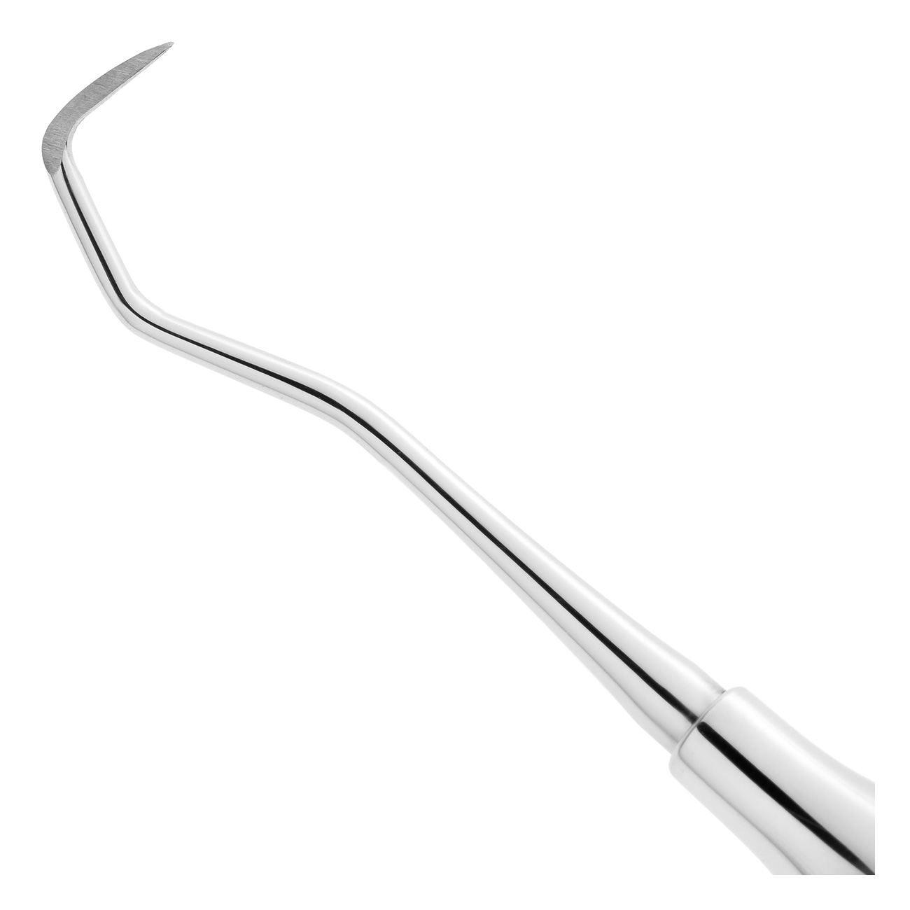 Терминальный стержень скейлера изогнут под углом к функциональному стержню, что значительно облегчает доступ к боковым поверхностям зубов.