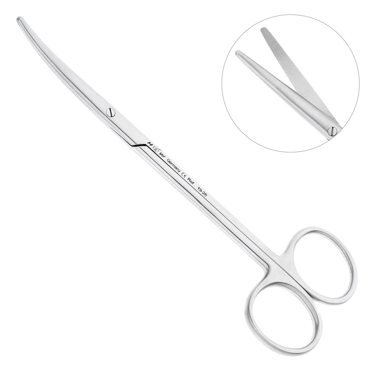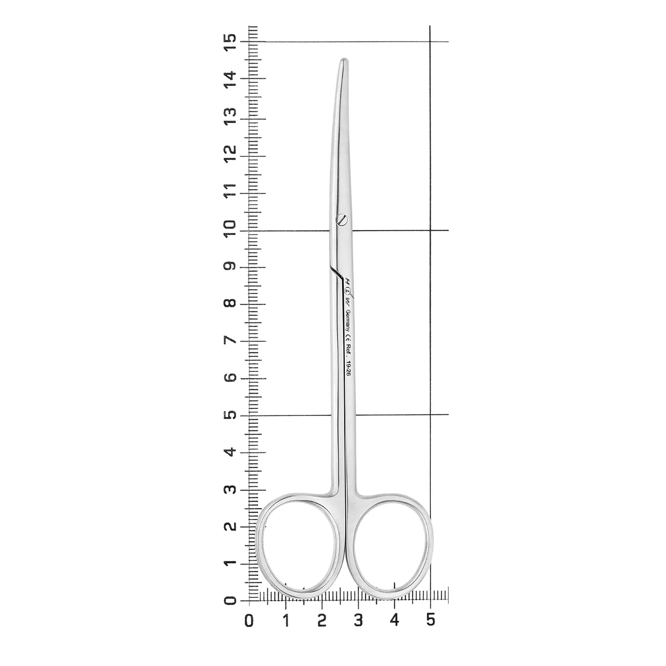 Данные ножницы имеют две отдельные режущие поверхности с закругленным кончиком, соединенные между собой шарнирным механизмом. При работе с инструментом его лезвия равномерно подводятся друг к другу, смыкаясь в одной точке и обеспечивая последовательный разрез тканей.