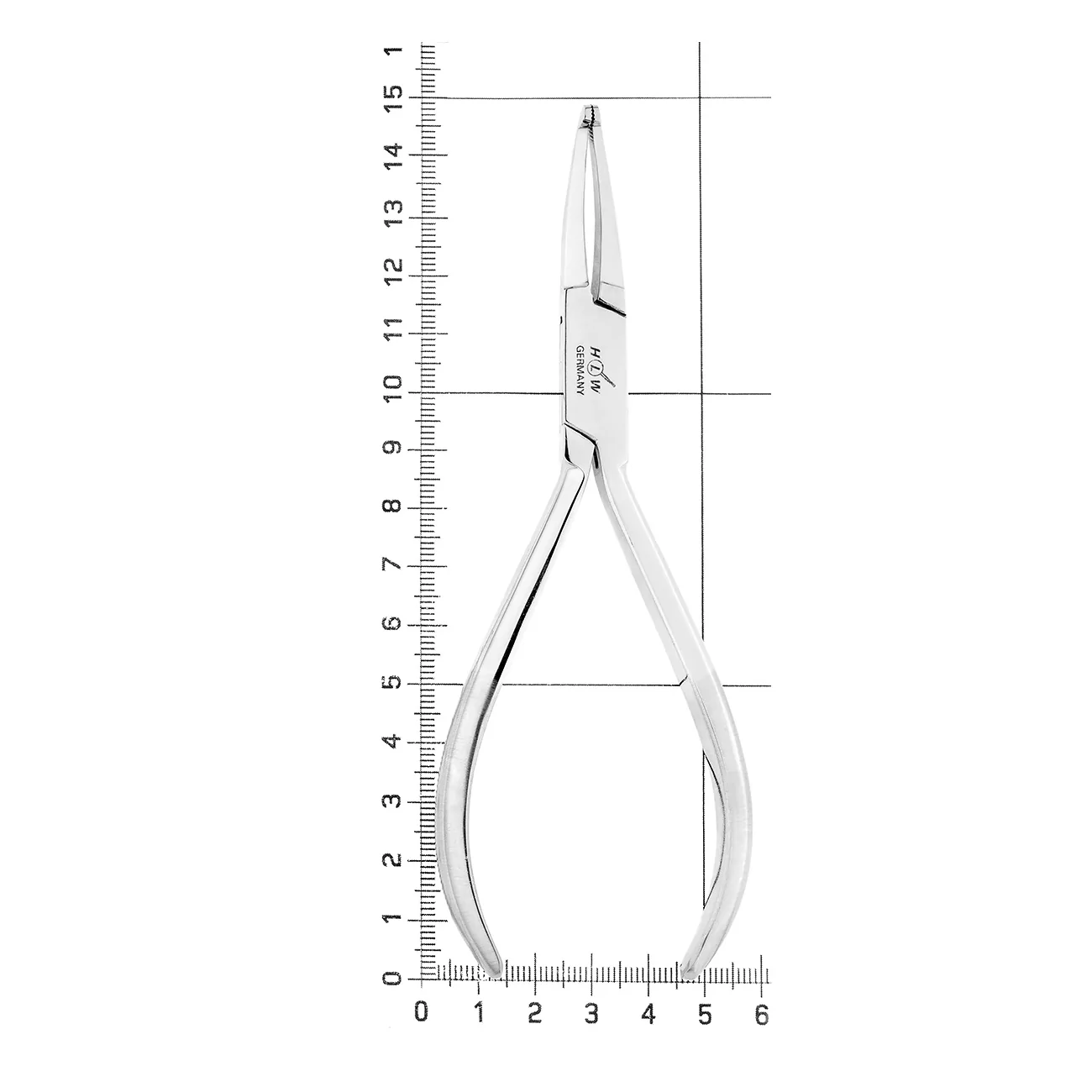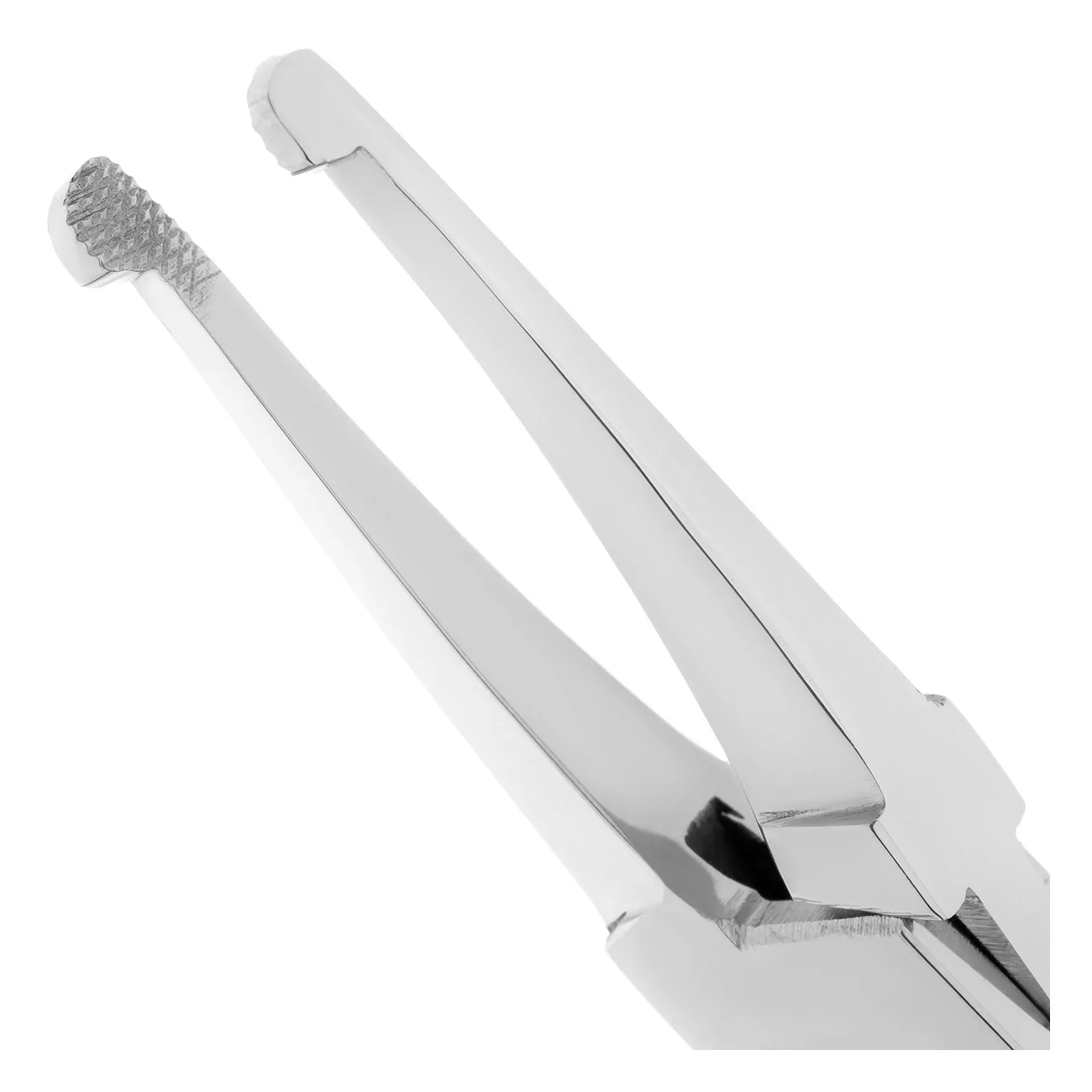 Рабочие части ортодонтического инструмента сходящиеся. Щечки щипцов на концах имеют продольно-поперечные насечки для качественной фиксации круглой, квадратной и прямоугольной проволоки.