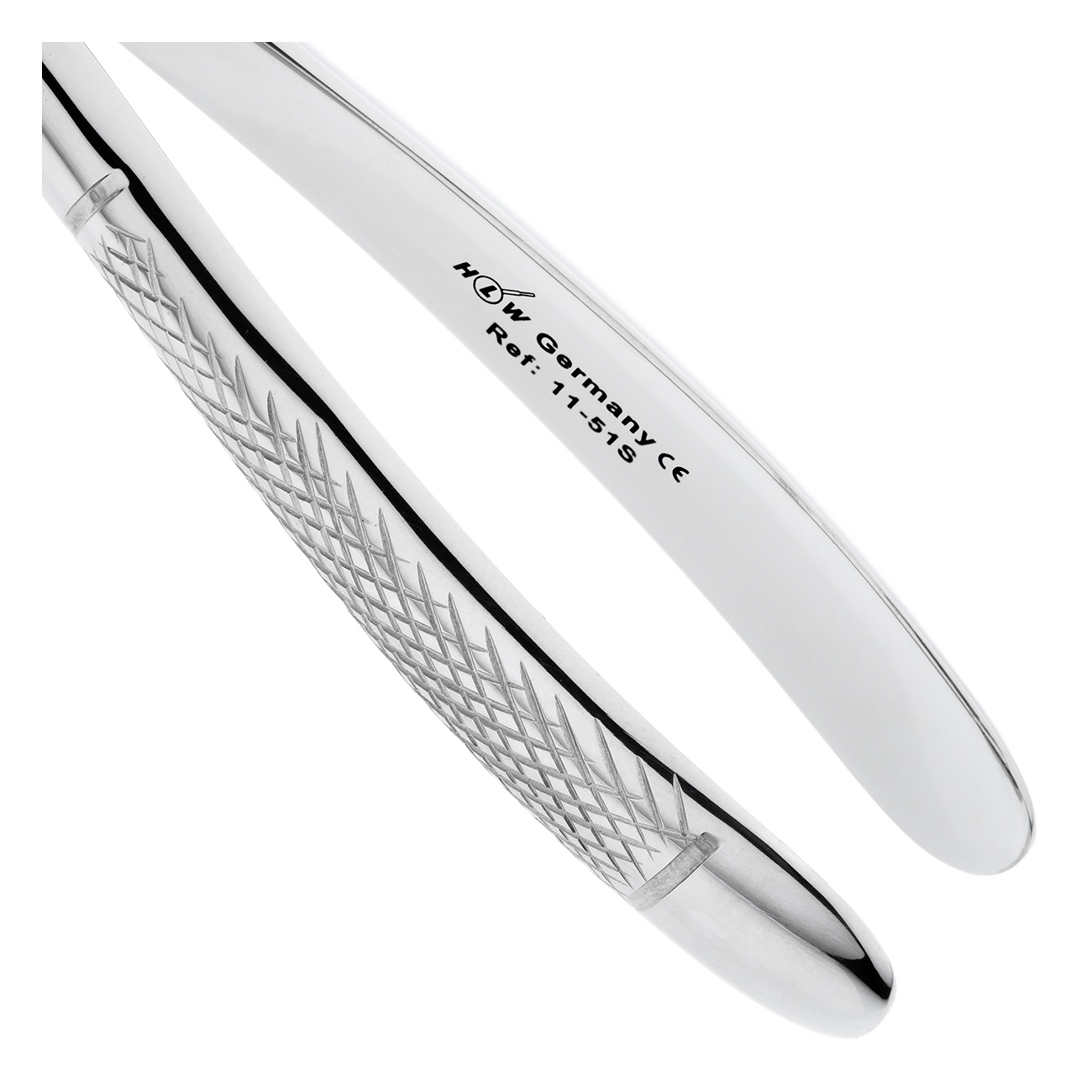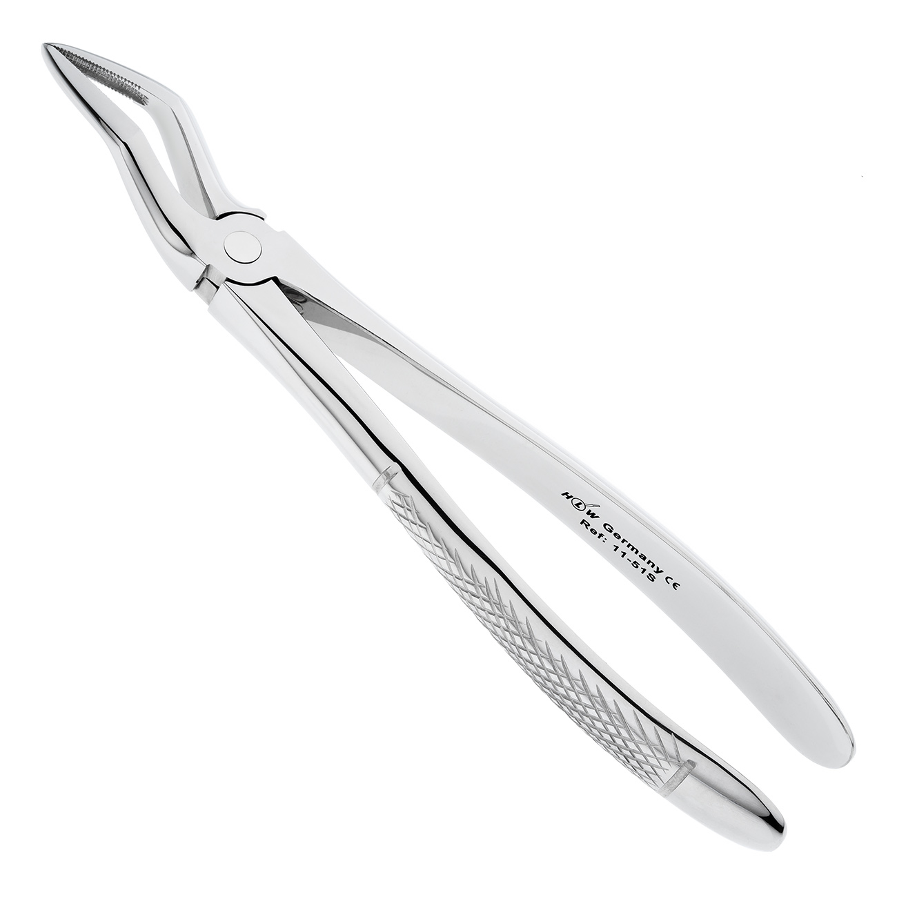 Для удаления корней молочных зубов на верхней челюсти у детей применяются щипцы формы №51S, выпускаемые немецкой компанией HLW Dental Instruments.