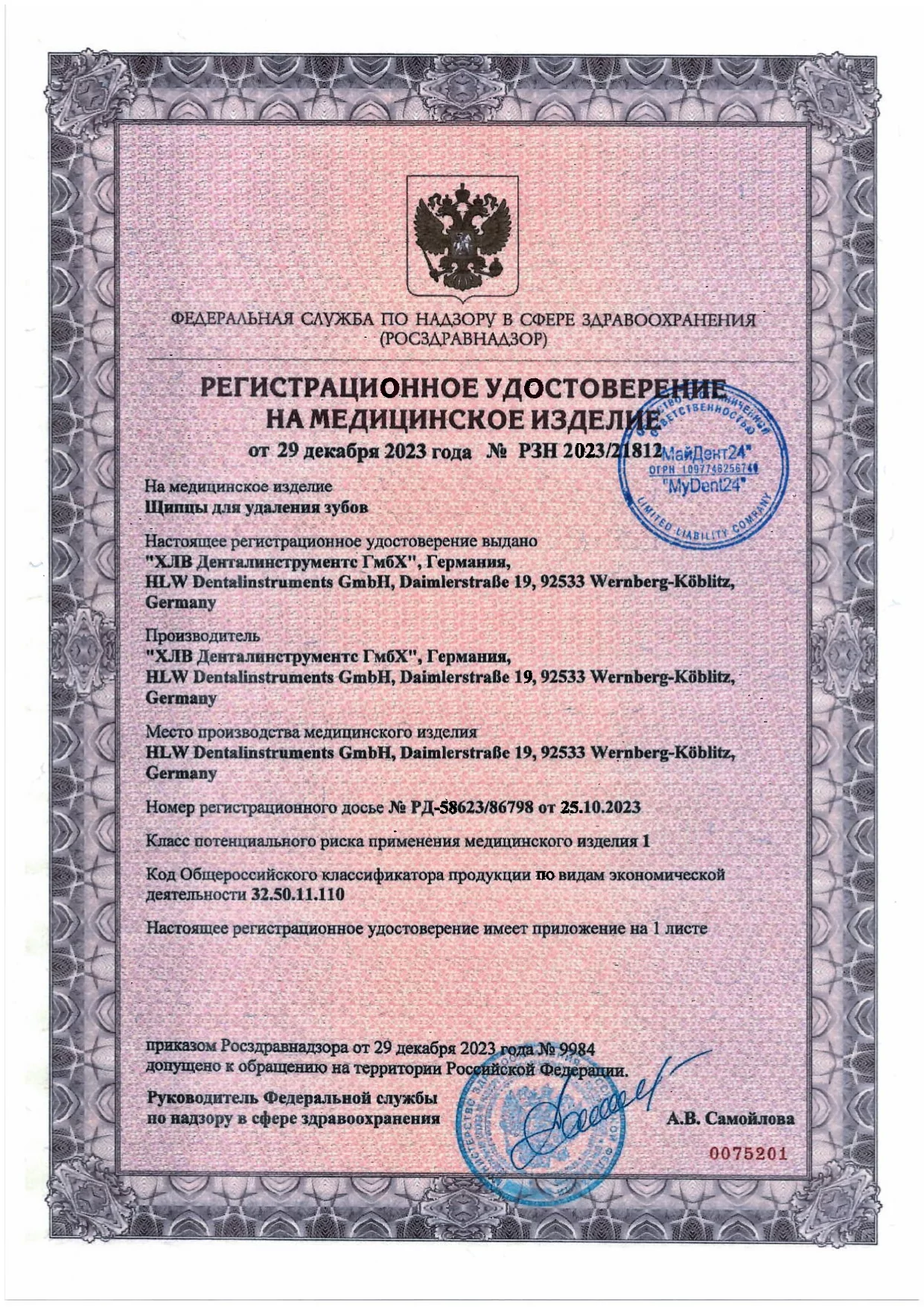 - HLW Dental-Instruments предоставляет гарантию на свои инструменты 1 год.