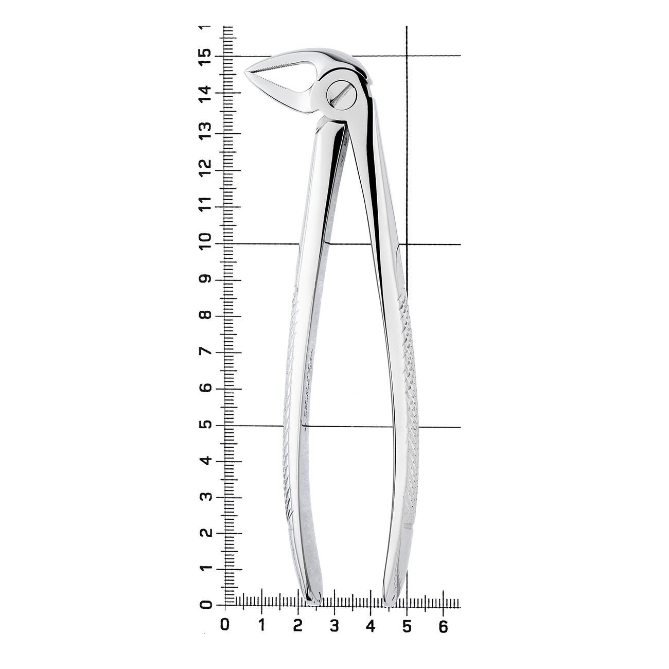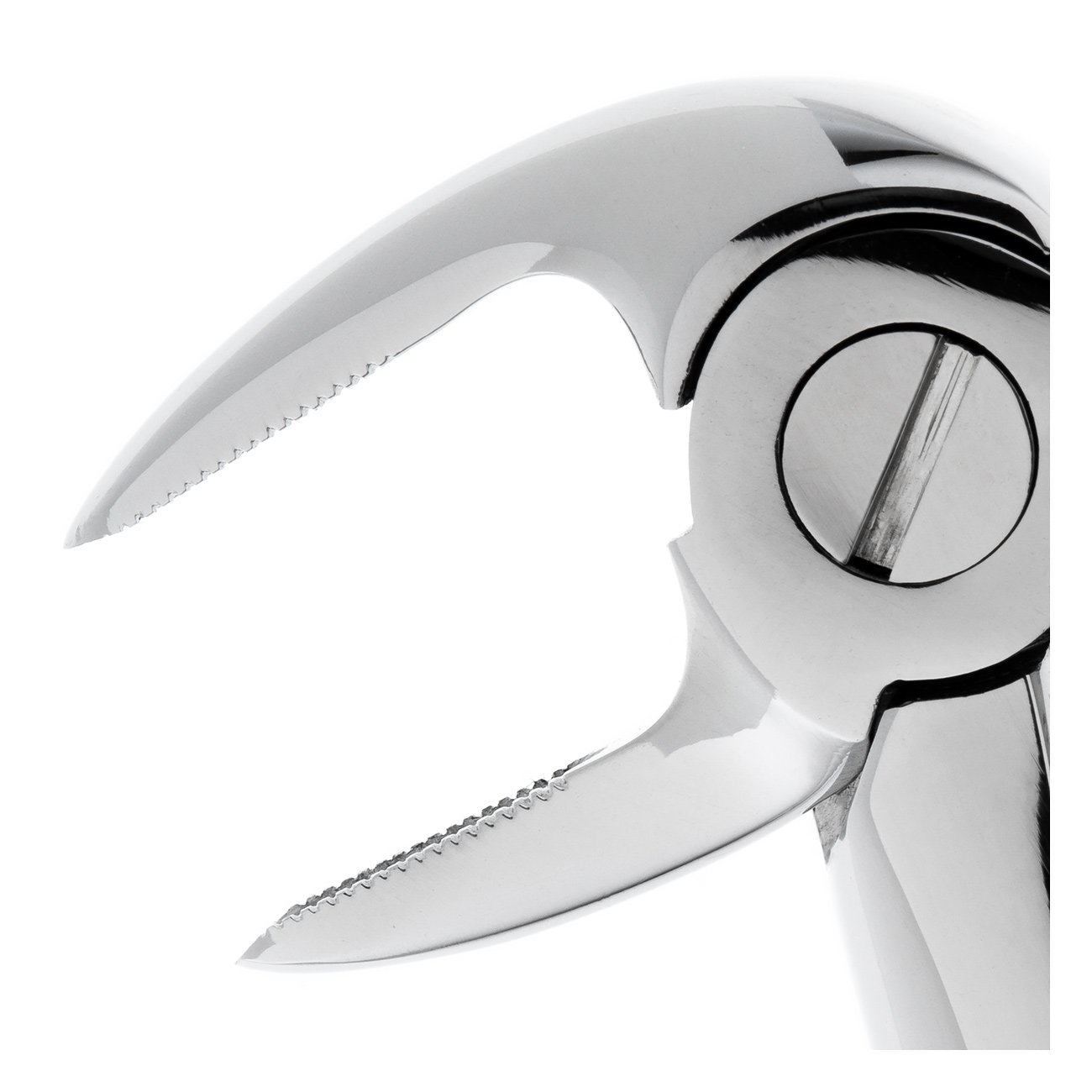 Рабочие части инструмента узкие, сходящиеся и имеют продольно-поперечные насечки на внутренних поверхностях щечек, что обеспечивает плотный захват корня зуба и облегчает его удаление.