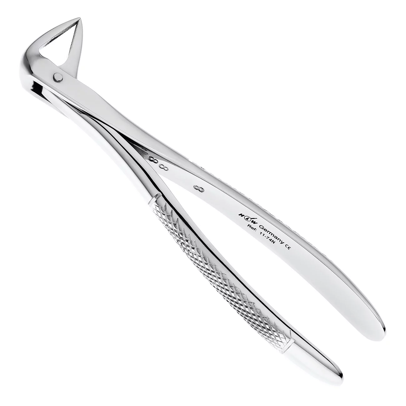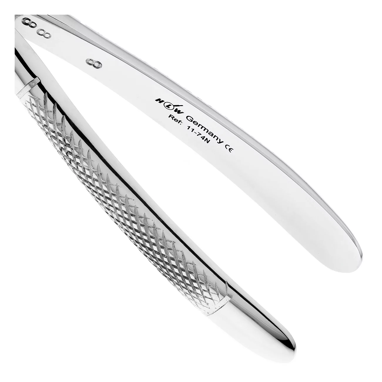 Для удаления корней зубов на нижней челюсти используются щипцы формы №74N производства немецкой компании HLW Dental Instruments.