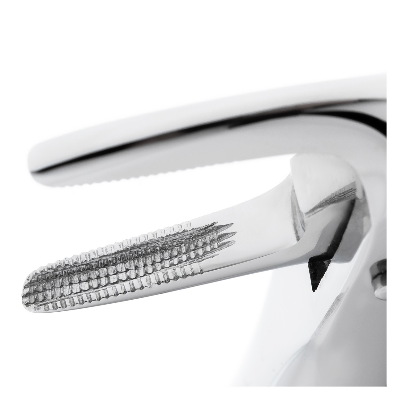 Щечки клювовидного инструмента ориентированы по отношению к ручкам под углом 90 градусов, при этом изгиб наносится по ребру.