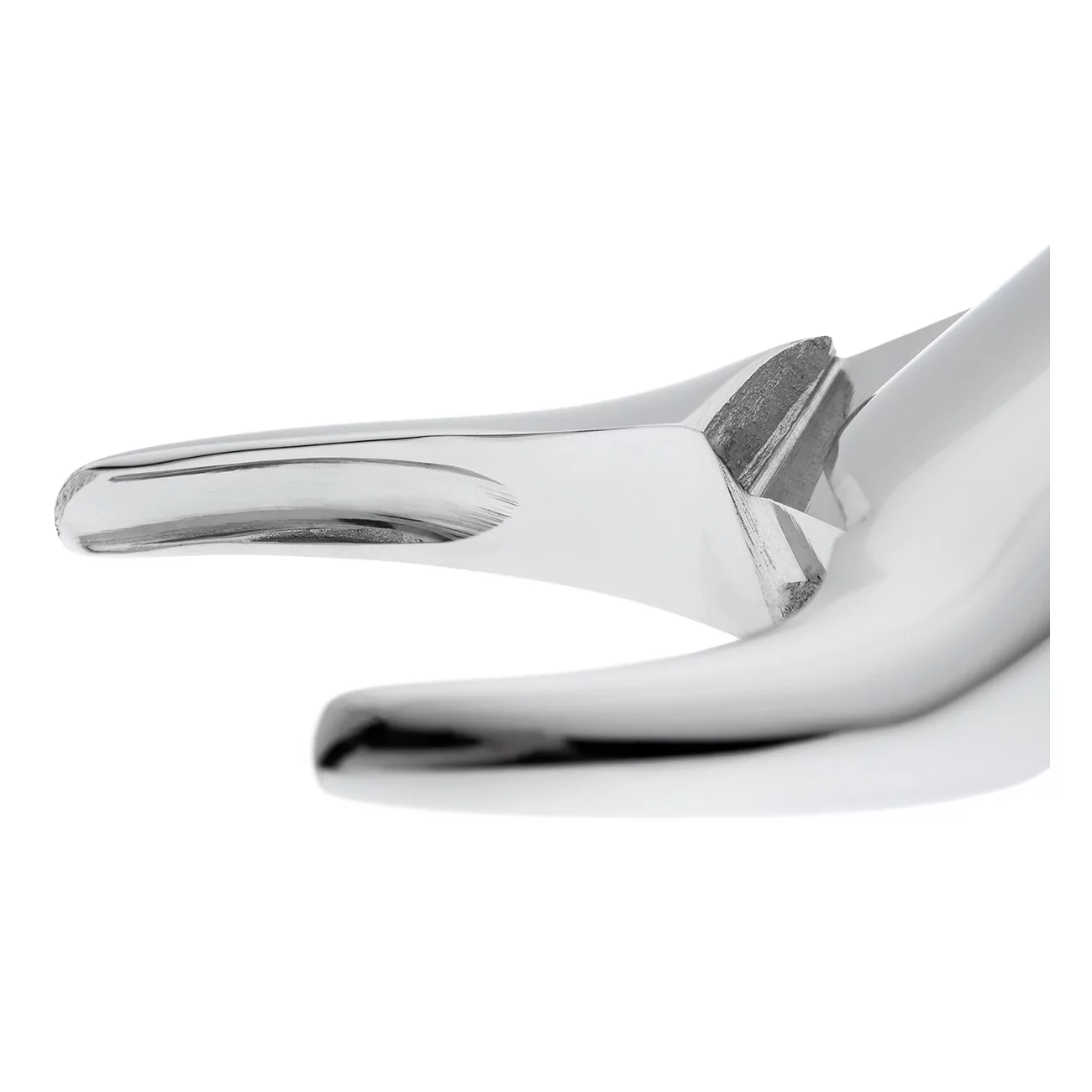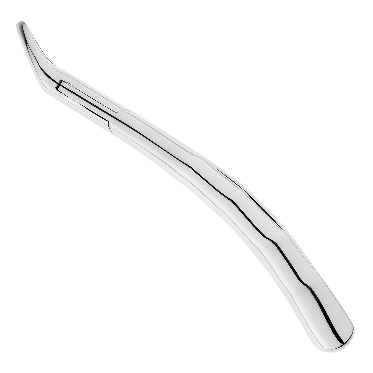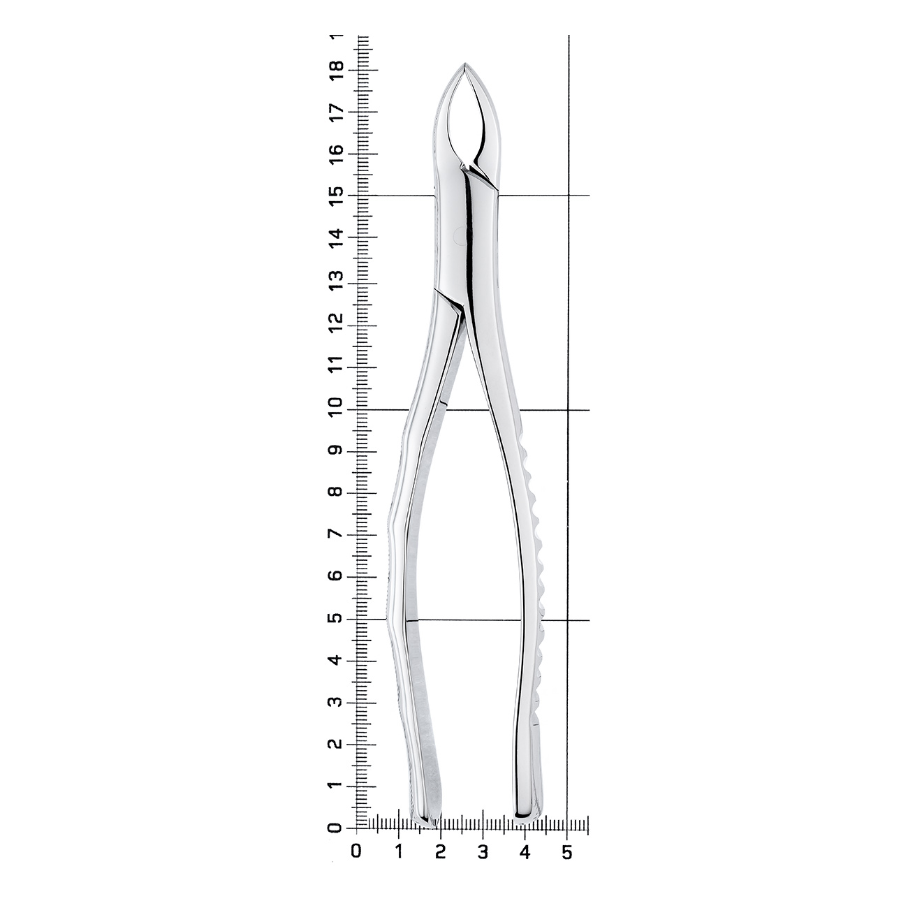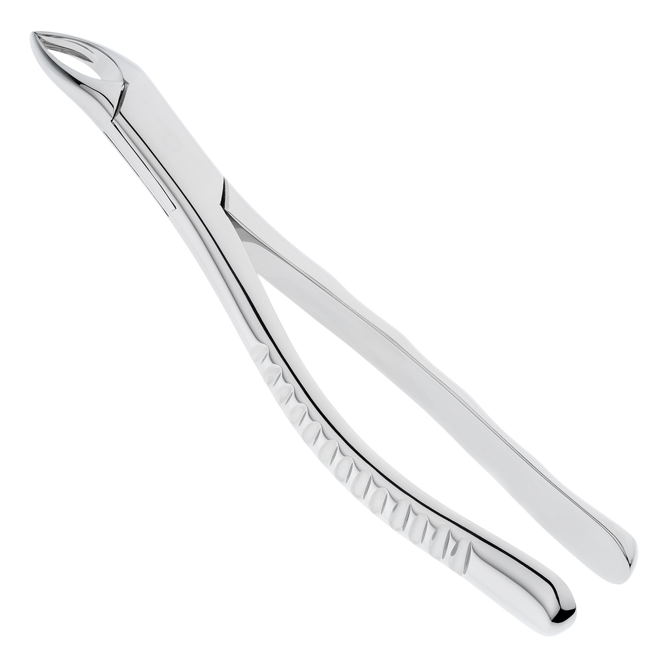Щипцы S-образной формы с двойным изгибом по плоскости, что дает возможность ввести инструмент глубоко в полость рта. В основании шарнирного соединения стоматологического инструмента имеется тефлоновая вставка, обеспечивающая плавный ход щипцов.