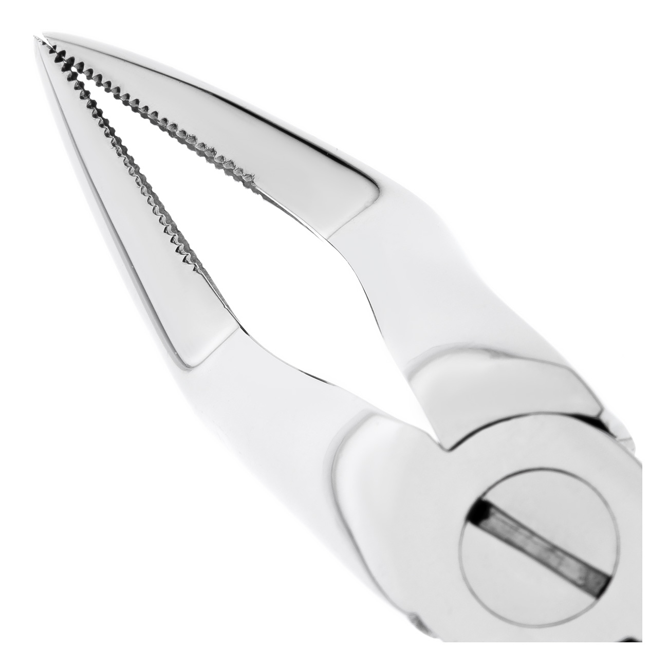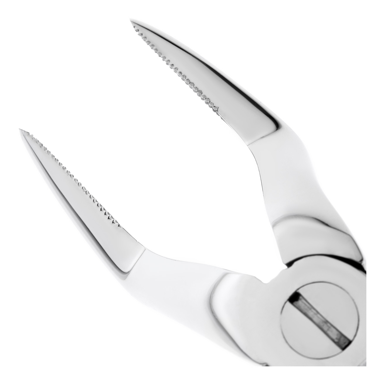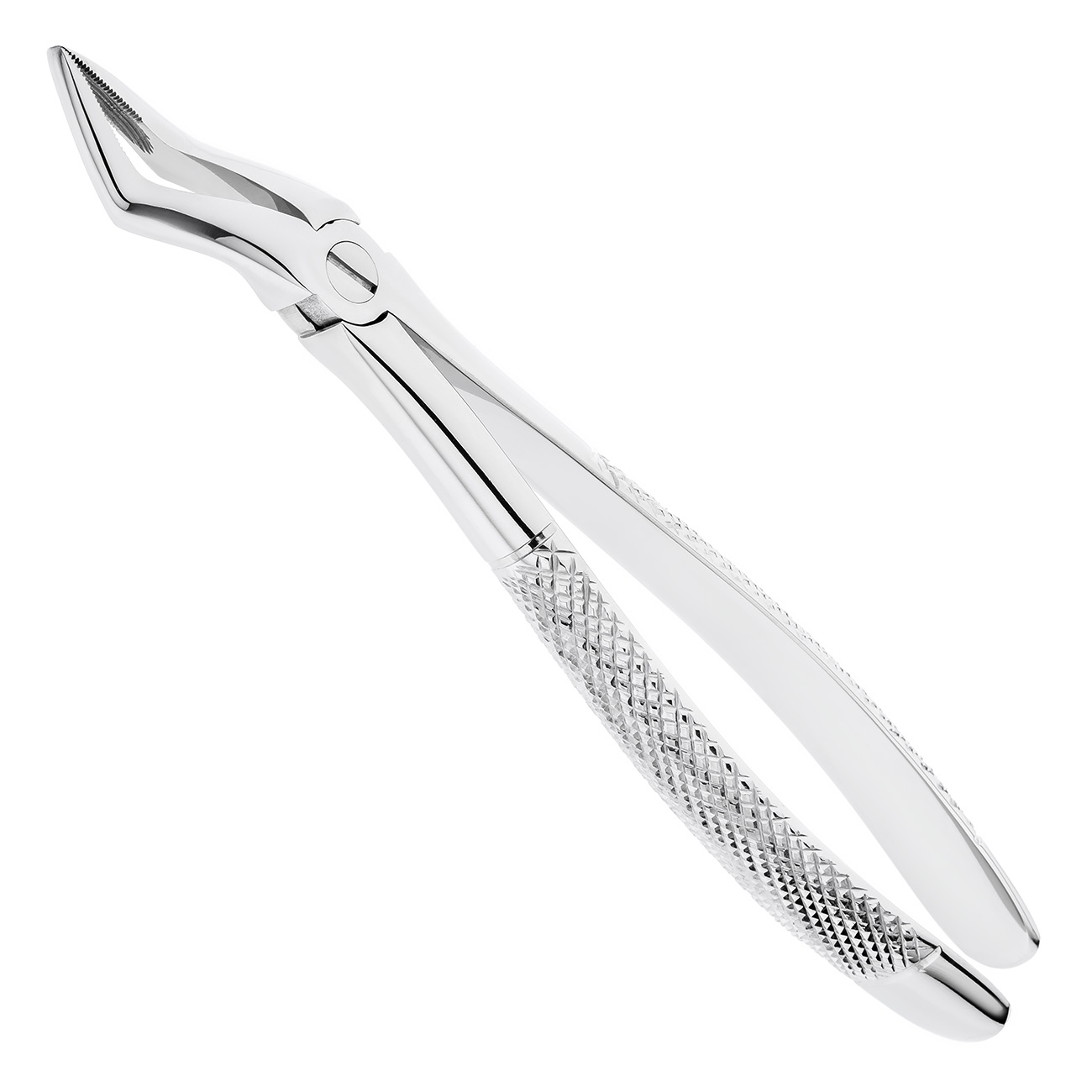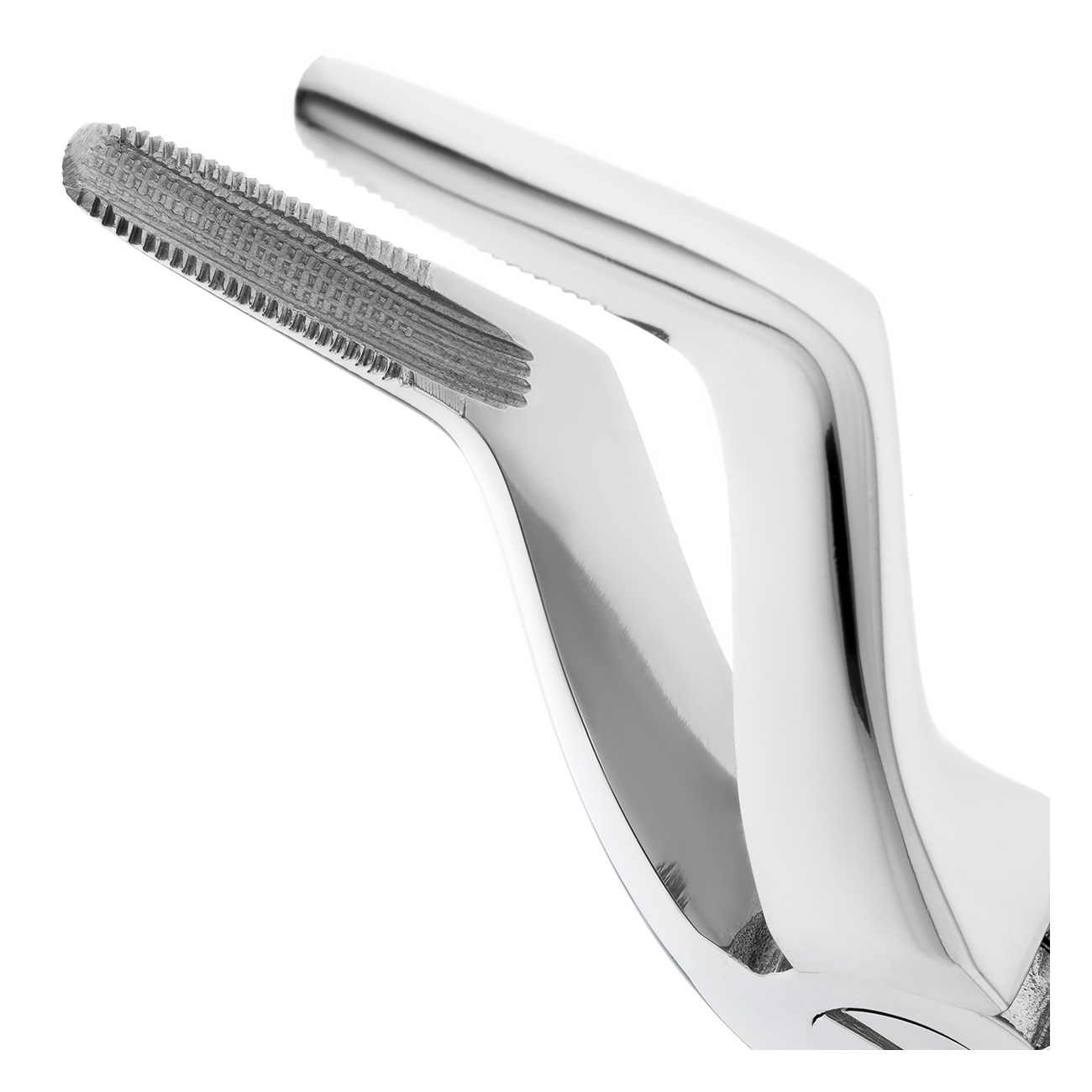 Рабочая часть щипцов представляет собой двойной байонетный (штыковидный) изгиб с продольно-поперечными насечками на внутренней поверхности, что обеспечивает удобную работу в любом квадранте верхней челюсти и плотный захват. При смыкании щипцов щечки сходятся в месте окончания рабочей части.