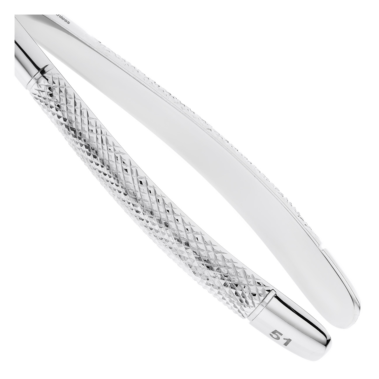 Щипцы имеют стандартные ручки, наружная поверхность которых покрыта ретенционным узором, предотвращающим скольжение фаланг пальцев в перчатке.