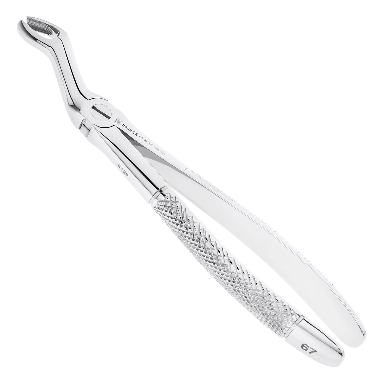 Щипцы формы №67, немецкого производителя nopa instruments Medizintechnik GmbH, применяют для удаления третьих моляров на верхней челюсти.
