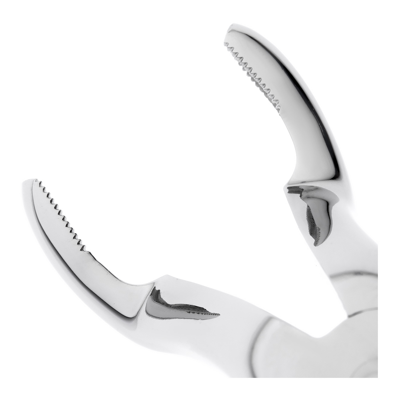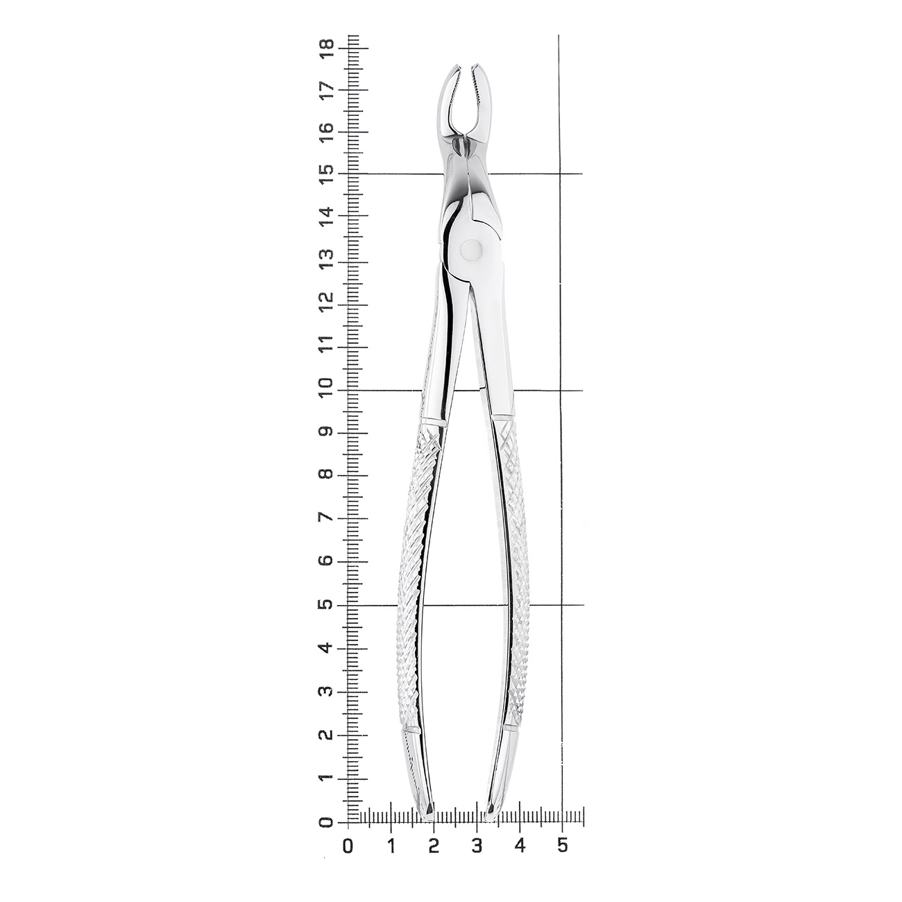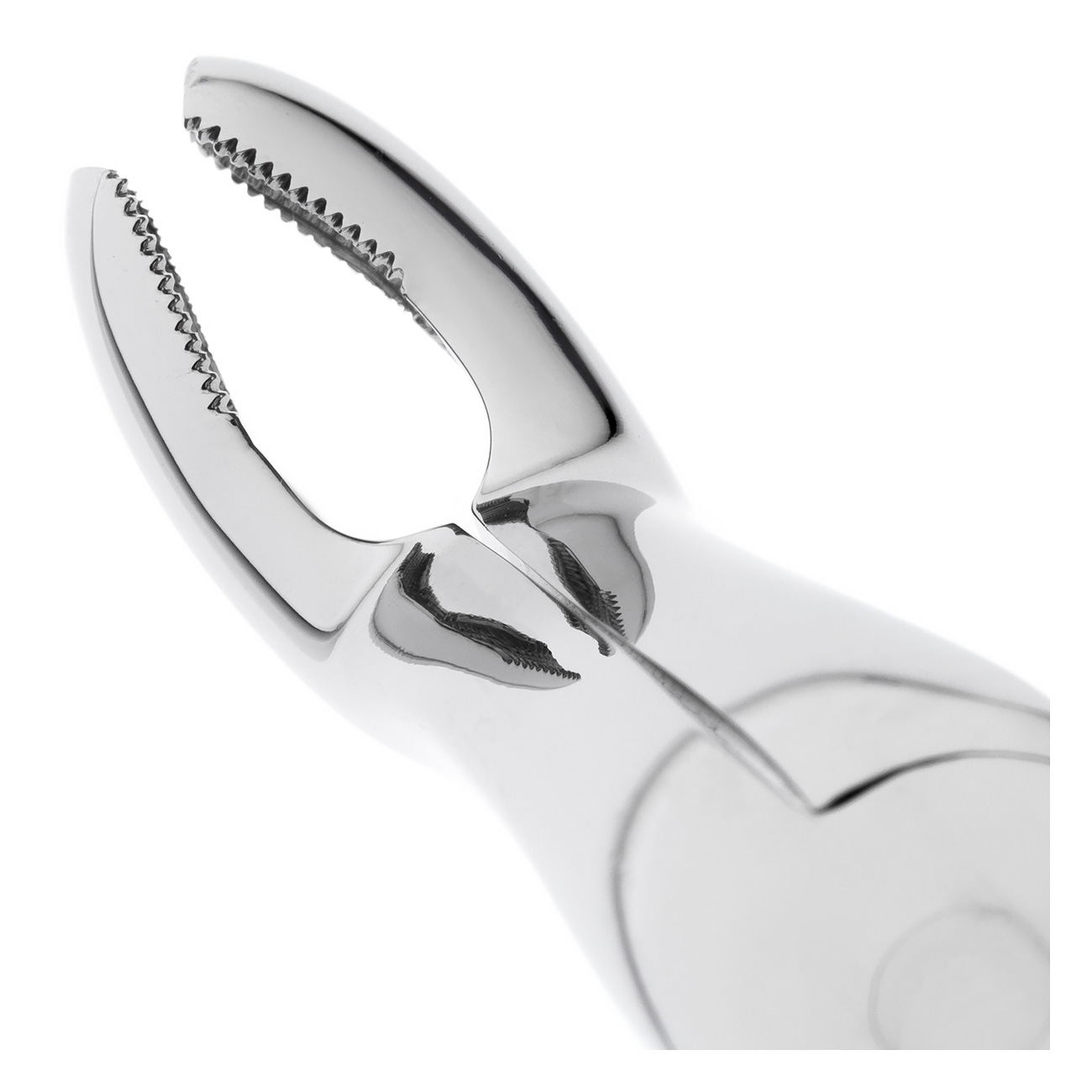 На внутренней поверхности рабочей части щипцов расположены продольно-поперечные насечки, обеспечивающие плотный захват зуба за коронковую часть. Щечки щипцов не сходятся.