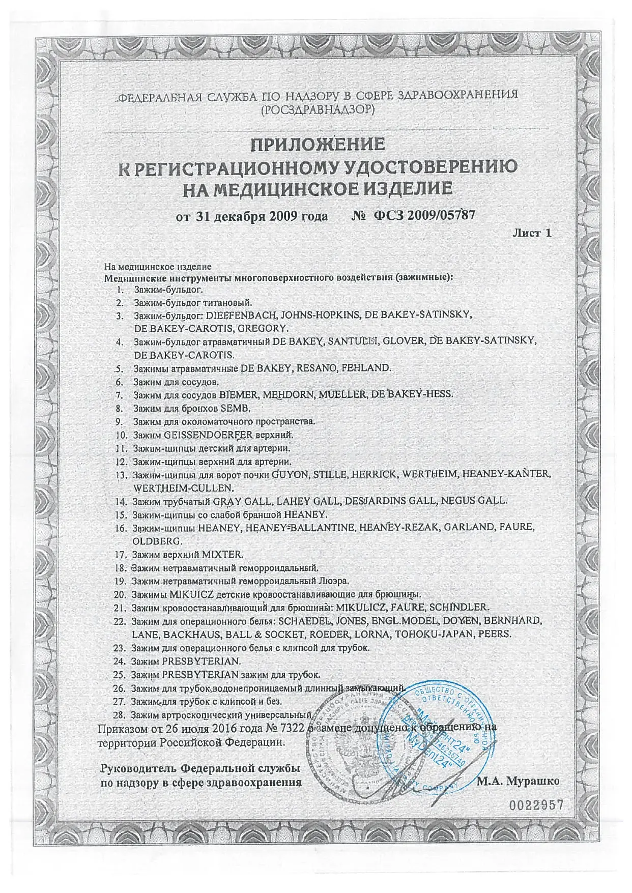 На внутренней поверхности щечек зажима нанесен поперечный ретенционный узор, который позволяет надежно удерживать ткани во время манипуляций. На конце одной из рабочих поверхностей инструмента продольно расположенный крупный зубец, соответствующий выемке между двумя аналогично размещенными зубцами на противоположной рабочей части. Такая конструкция щечек зажима прочно захватывает и удерживает ткани.