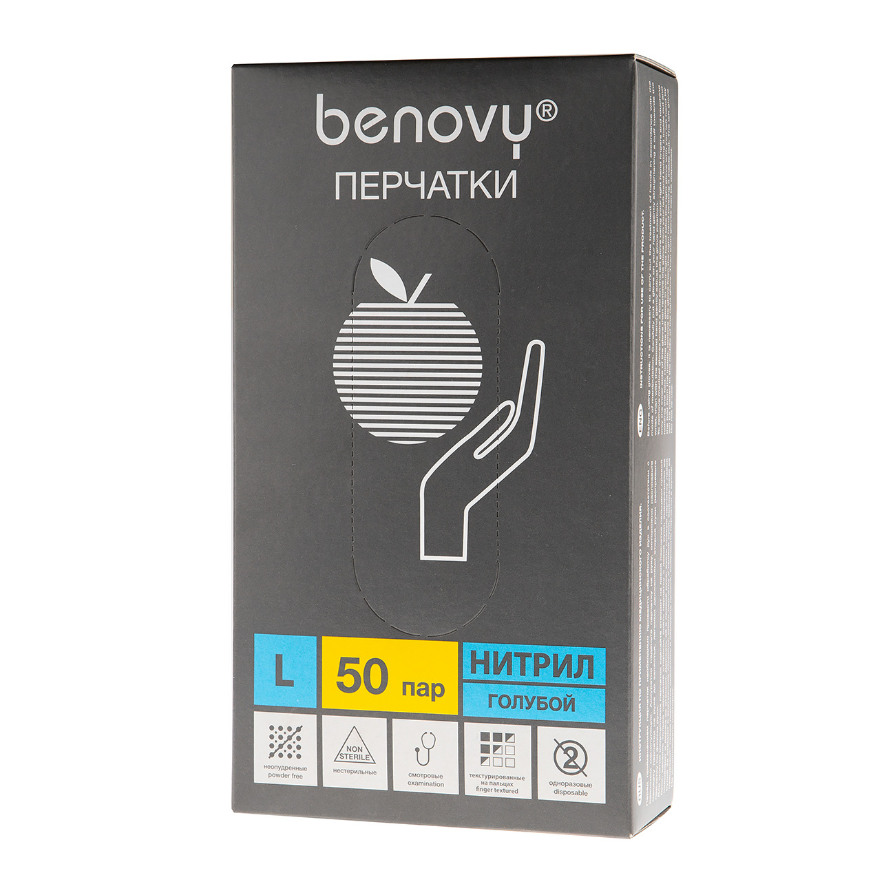 Перчатки BENOVY, нитриловые, цвет: голубой, 50 пар, р-р L