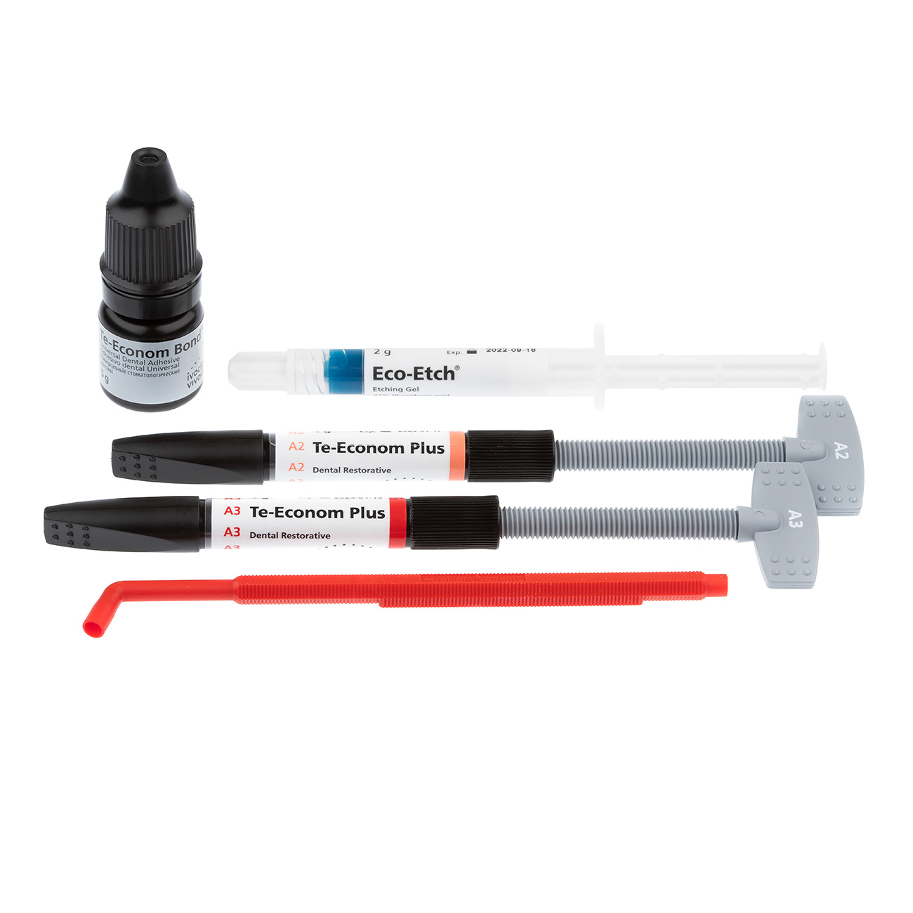Включает в себя однокомпонентный адгезив тотального травления Te-Econom Bond, текучий композит Te-Econom Flow и пакуемые композитные материалы Te-Econom Plus.