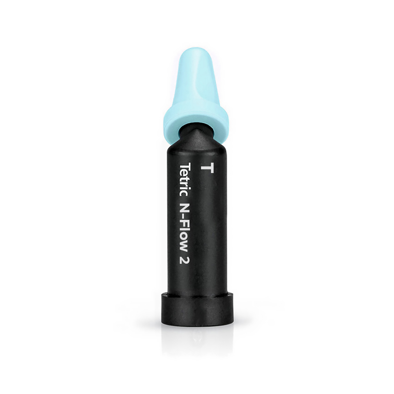 Tetric N-Flow 2 доступен в 14 различных оттенках: 3 оттенка дентина, 3 оттенка Bleach и 8 универсальных оттенков эмали, включая прозрачный оттенок. Он обладает тиксотропной консистенцией, благодаря чему при моделировании инструментами (приложении давления) имеет большую пластичность и текучесть, т. е. менее вязкий. При отсутствии давления он становится более вязким и стабильным, поэтому не стекает с гладких поверхностей зуба. Узкие канюли диаметром 0,9 мм, входящие в комплект, обеспечивают точное нанесение. Интенсивность света свыше 1 300 мВт/см2 (например, в сочетании с более коротким временем отверждения 5 с) нельзя применять на молочных зубах.