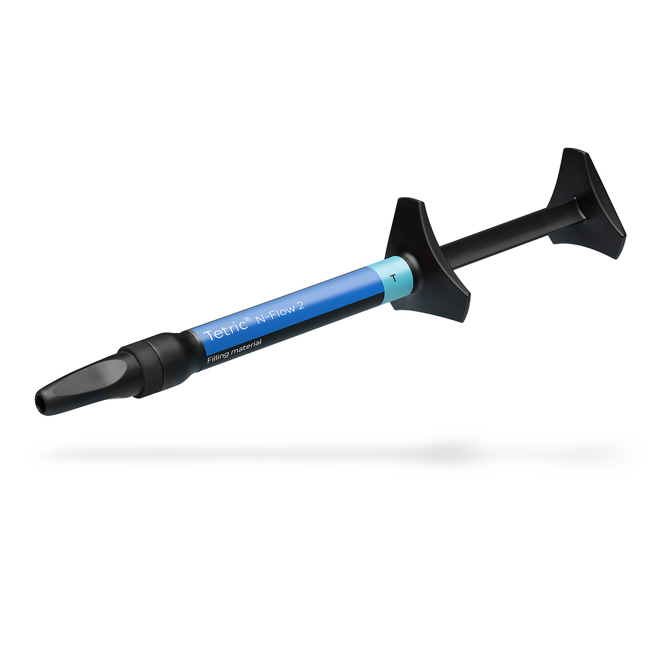 Tetric N-Flow 2 доступен в 14 различных оттенках: 3 оттенка дентина, 3 оттенка Bleach и 8 универсальных оттенков эмали, включая прозрачный оттенок. Он обладает тиксотропной консистенцией, благодаря чему при моделировании инструментами (приложении давления) имеет большую пластичность и текучесть, т. е. менее вязкий. При отсутствии давления он становится более вязким и стабильным, поэтому не стекает с гладких поверхностей зуба. Узкие канюли диаметром 0,9 мм, входящие в комплект, обеспечивают точное нанесение. Интенсивность света свыше 1 300 мВт/см2 (например, в сочетании с более коротким временем отверждения 5 с) нельзя применять на молочных зубах.