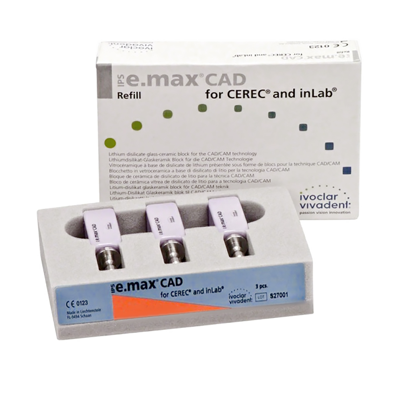 - IPS e.max CAD CEREC/inLab LT BL2 B32 - 3 шт. в упаковке.