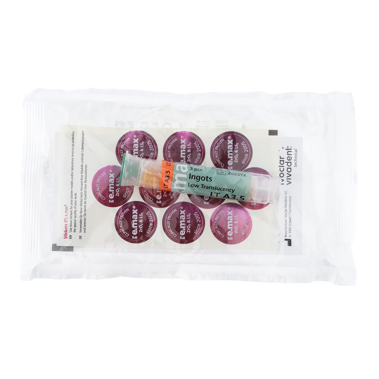 IPS e.max Press LT (Low Translucency – низкая прозрачность) для полноанатомических частичных и полных коронок. Во фронтальном отделе максимальной эстетики можно добиться техникой Cut-Bak c использованием керамики IPS e.max Ceram.